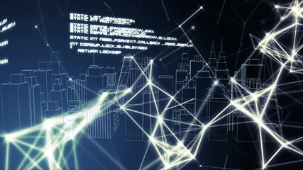 Digital Data Processing Over Urban Cityscape Illustration Videos
