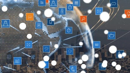 Digital Data Processing Over Urban Cityscape Illustration Videos
