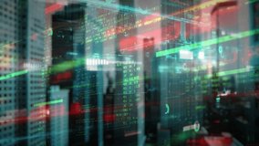 Digital Data Processing Overlays On City Background Videos