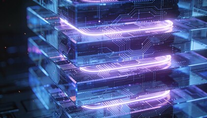 Digital Data Processing With Abstract Purple Grid On Servers Videos