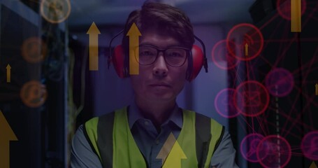 Digital Data Processing With Arrow Graphics Over Rows Of Servers Videos