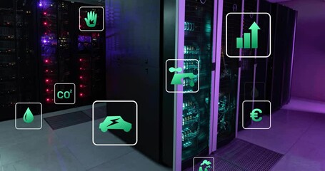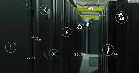Digital Data Processing With Eco Icons And Computer Servers Videos
