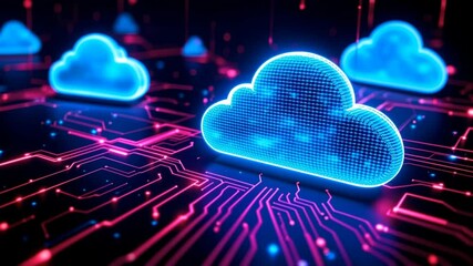 Digital Data Processing With Floating Tech Icons Animation Videos