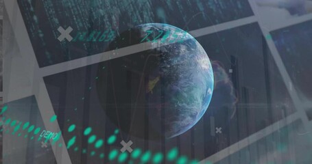 Digital Data Processing With Globe On Virtual Screens Videos