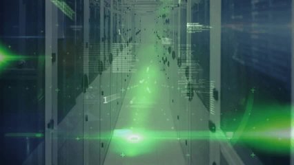 Digital Data Servers With Flowing Binary Code Overlay Videos