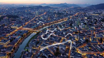 Digital Data Stream Flowing Over Modern City Videos