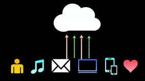 Digital Data Stream With Media Icons On Cloud Background Videos