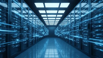 Digital Data Streams Across High Tech Server Rack Videos