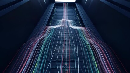 Digital Data Streams Flow Over Server Racks In Data Center Videos