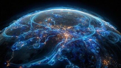 Digital Data Streams Flowing Over Planet Earth Visualization Videos