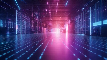 Digital Data Transmission Visualization In Server Room Videos