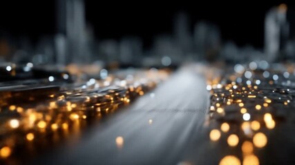 Digital Data Visualization On Blurred Cityscape Background Videos