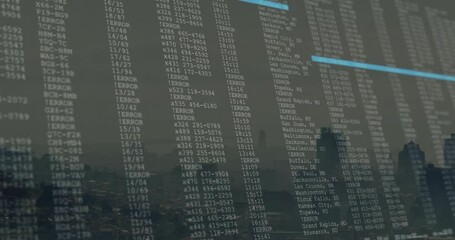 Digital Data Visualization Over Cityscape At Dusk Videos