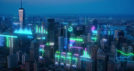 Digital Data Visualization Over Cityscape With Graphs Videos
