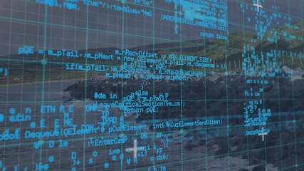 Digital Data Visualization Over Coastal Landscape Videos