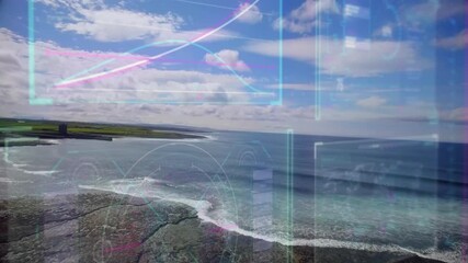 Digital Data Visualization Over Coastal Landscape Videos