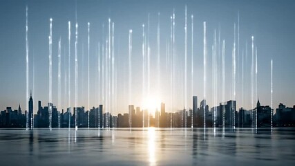 Digital Data Visualization Over Futuristic Cityscape Videos