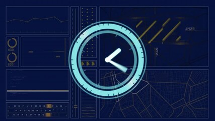 Digital Data Visualization With Clock And Global Network Interface Videos