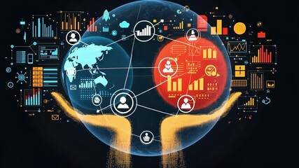 Digital Data Visualization With Colorful Graph On Global Map Videos