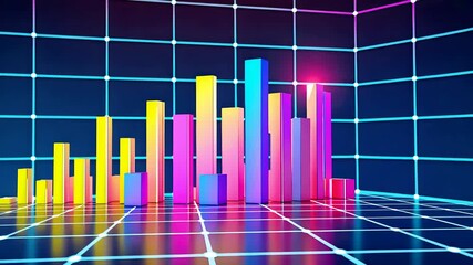 Digital Data Visualization With Global Bar Chart On Grid Background Videos