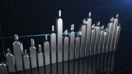 Digital Data Visualization With Global Bar Chart On Grid Background Videos