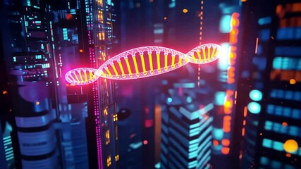 Digital Dna Structure Animation Hovering Above Cityscape Videos