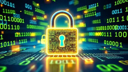 Digital Encryption Interface With Lock Symbol Amidst Data Streams Videos