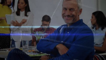 Digital Entrepreneur Analyzing Binary Data While Working Videos
