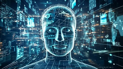 Digital Faces In Data Stream Conceptual Background Videos