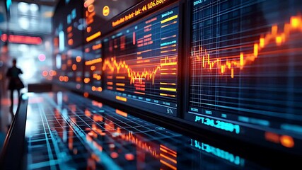 Digital Financial Data And Graphs In Virtual Interface Videos