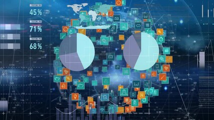 Digital Financial Data Chart With Networking Elements And Text Overlay Videos