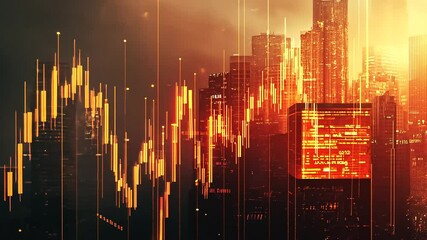 Digital Financial Data Overlaid On Urban Skyline Videos