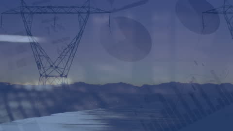 Digital Financial Data Overlaid On Urban Skyline Videos