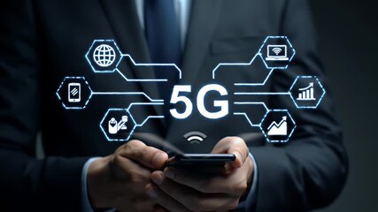 Digital Financial Data Overlay With Businessman Holding Smartphone Videos