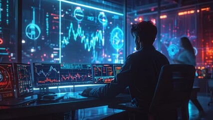Digital Financial Data Processing Animation In Dark Setting Videos
