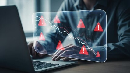 Digital Financial Data With Cybersecurity Warning Overlay Videos