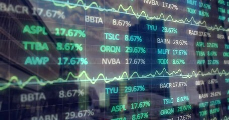 Digital Financial Graph Interface Over Modern Cityscape Videos