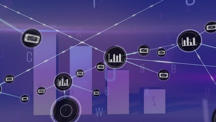 Digital Financial Network With Data Processing Icons Videos