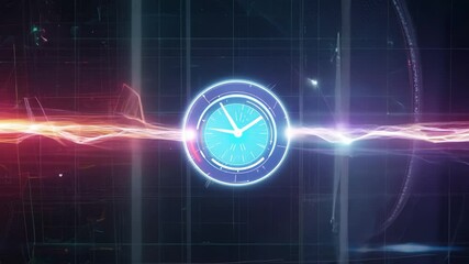 Digital Futuristic Clock Interface With Data Streams Videos