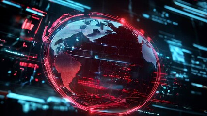 Digital Futuristic Interface With Red Globe And Data Streams Videos