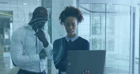 Digital Global Business Network Interface With Financial Data Overlay Videos