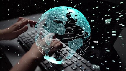Digital Global Business Network Interface With Financial Data Overlay Videos
