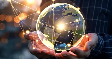 Digital Global Network Connections Array Illuminating Earth Videos