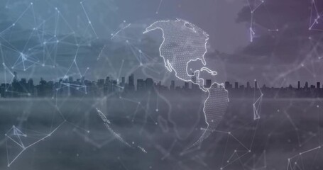 Digital Global Network Outline Over Cityscape Background Videos