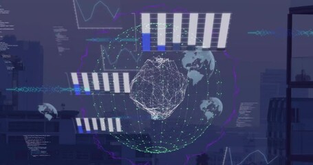 Digital Globe And Data Processing Over Cityscape Visualization Videos