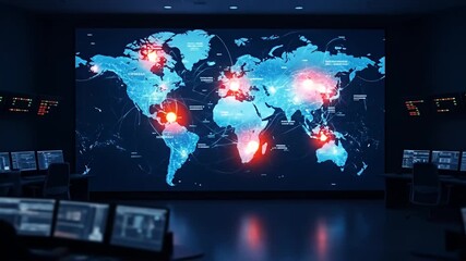Digital Globe And Data Streams In Futuristic Server Room Videos