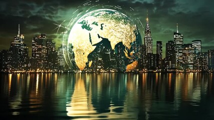 Digital Globe Overlaid On Futuristic Cityscape Videos