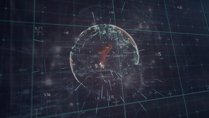 Digital Globe Spinning With Data Over Grid Background Videos