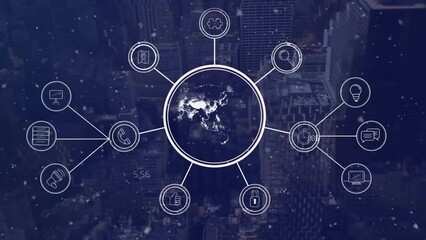 Digital Globe With Data Processing Over Cityscape Background Videos