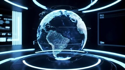 Digital Globe With Networked Grid And Dynamic Shapes Videos
